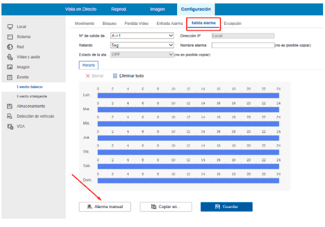 Activar salida de relé manualmente en grabadores y cámaras Safire
