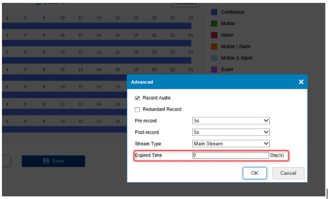 Para cambiar el tiempo de almacenamiento de las grabaciones a los días deseados, habrá que actuar canal por canal.
