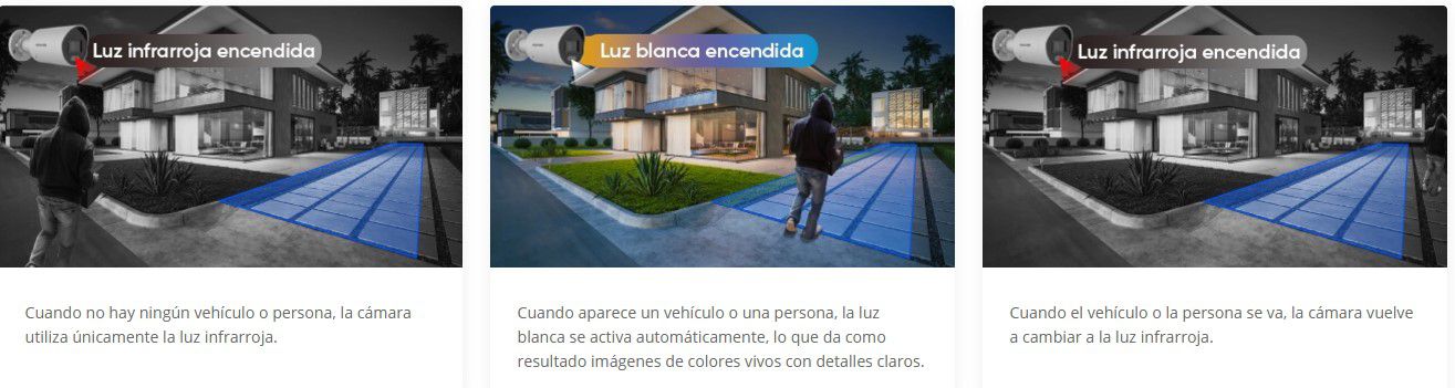 Gracias a su tecnología Smart Hybrid Light, puede capturar escenas claras en condiciones de poca luz, ya sea en color o en blanco y negro, ofreciendo un alcance de hasta 20 metros con iluminación inteligente de modo que se ilumina cuando detecta movimiento.