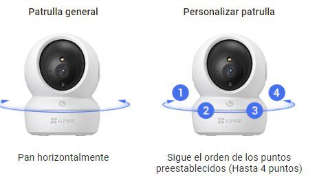 La Ezviz H6c Pro 2K⁺ gira e inclina automáticamente para eliminar puntos ciegos con su exclusivo modo de patrulla. Incluso se puede personalizar el patrón de patrulla de acuerdo según requerimientos, sin dejar ningún rincón al descubierto.