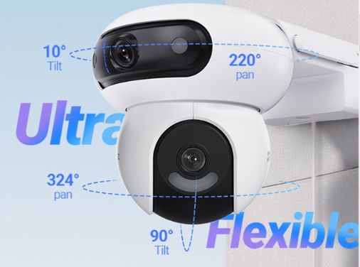 Diseñada para ofrecer una cobertura de 360° sin puntos ciegos, incorpora dos lentes 2K+ con rotaciones independientes, permitiendo vigilancia simultánea en dos áreas distintas o un enfoque dual para capturar más detalles de una escena específica.